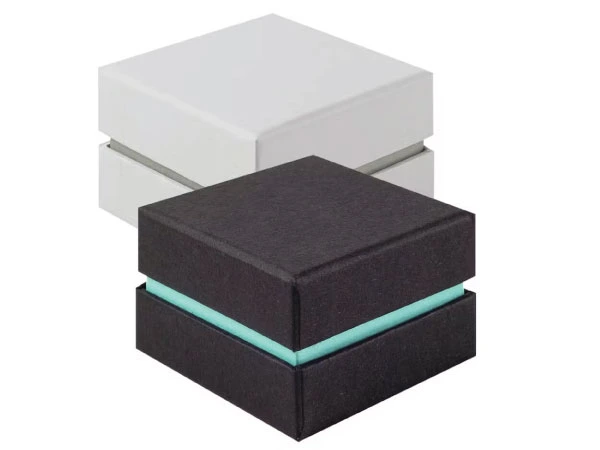 Separate lid and base control product reveal and stacking load, used for jewelry, watches, and gourmet foods.
